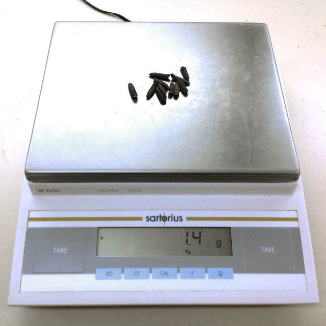 + Counts are estimated based on weight - each pupa ranges from 0.1 to 0.2 grams and varies from harvest to harvest.