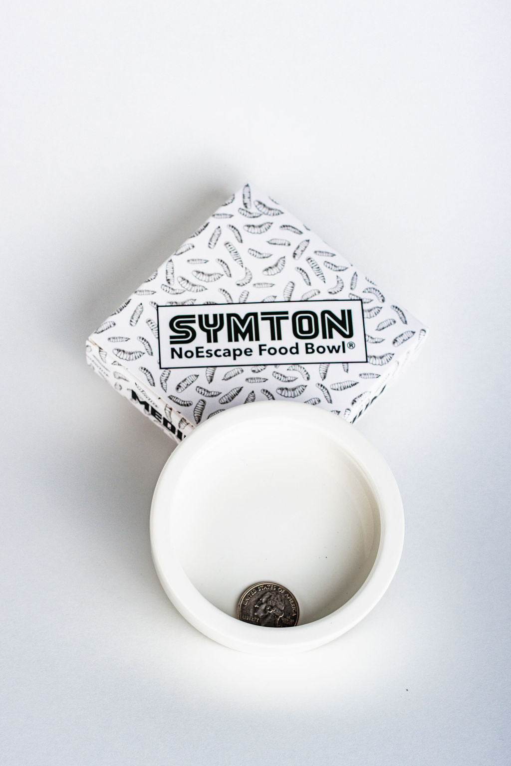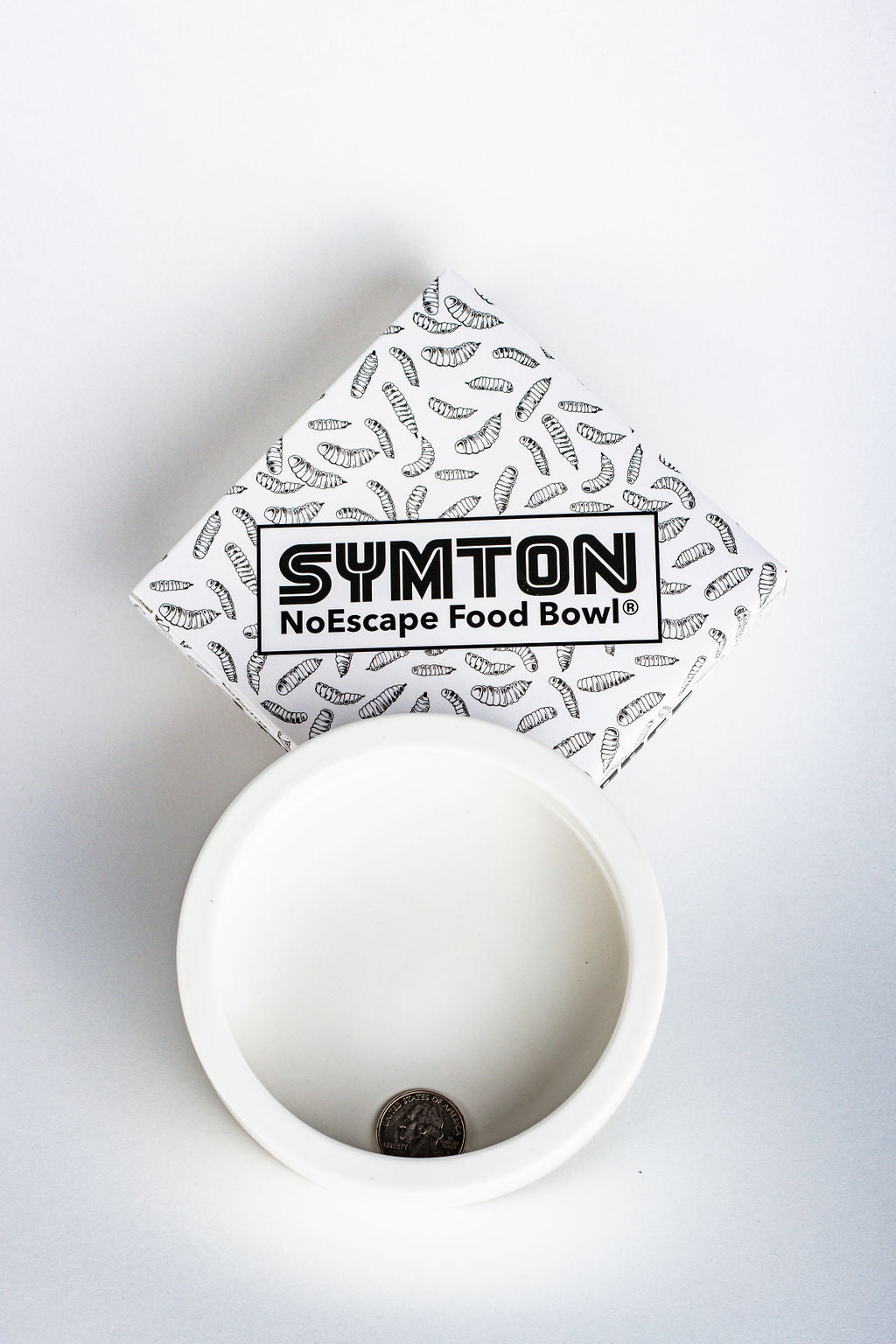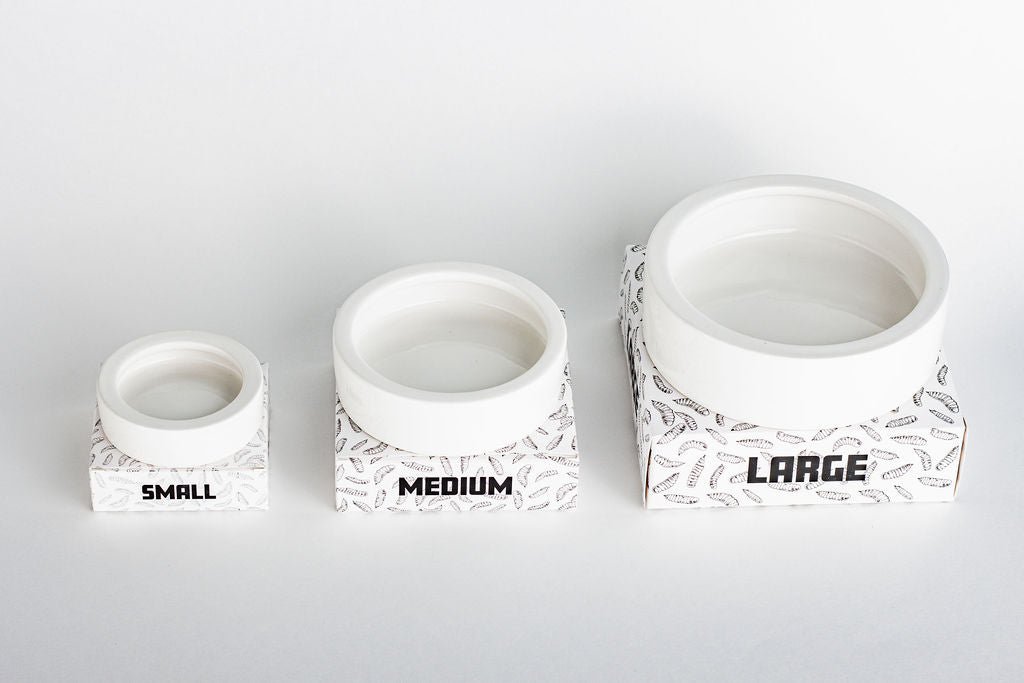 Our new, "no escape" food bowls have a lip on the inner top ring, so when grubs make it to the top, they fall right back down into the dish again. And did we mention they're made of high-quality ceramic? That's right folks, so there will be no food dish slippage when your hungry critter goes wild over our BSFL - that bowl will not be moving. Mealtime has never been so easy.