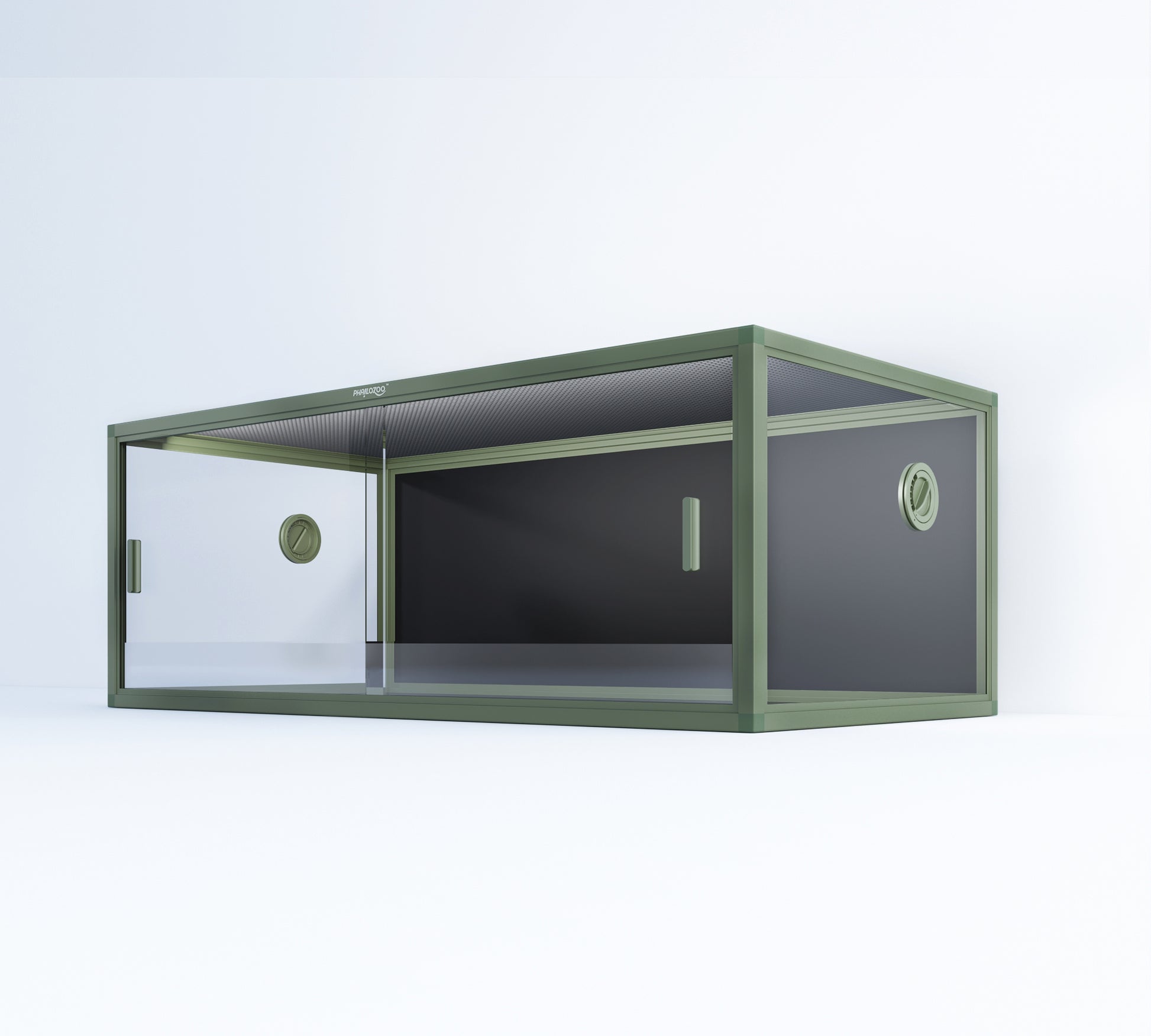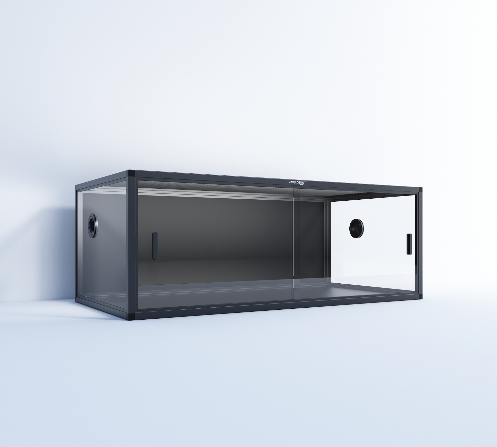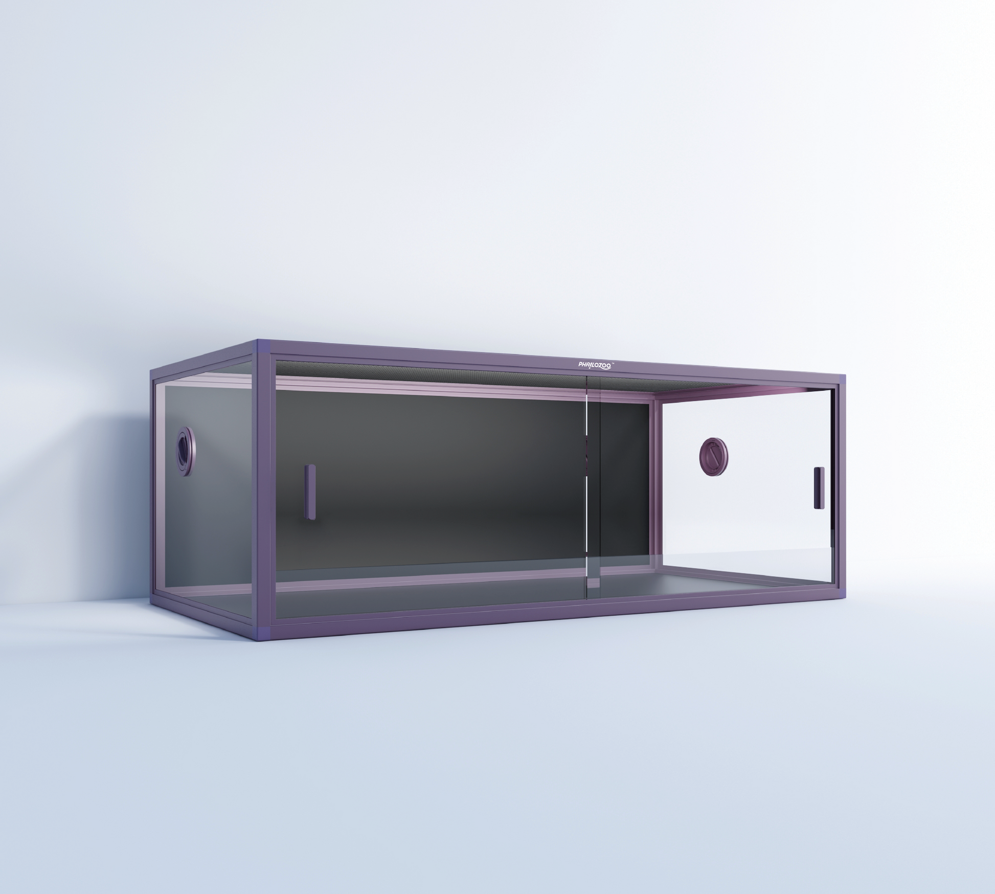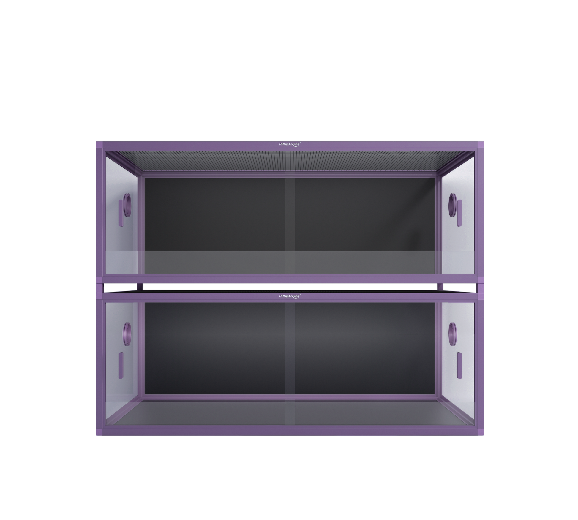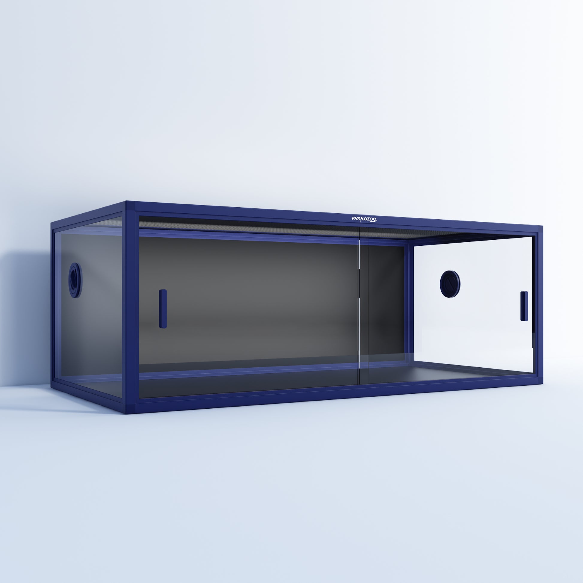 Phailozoo's 85 Gallon Enclosure is the most stylish enclosure on the market. Available in FOUR colors (black, dark blue, royal purple, and earthy green), with CLEAR side panels and substrate barrier for maximum viewing. The enclosure features TEMPERED GLASS DOORS for extra security and stability. Both side panels feature grommets for electrical cords to feed through. These tanks come with 1" spacers for stacking, but 3" and 10" stackers are also available. Do not stack over three tanks!
